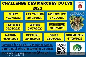 Participez à 7 des 10 marches du challenge et gagnez peut-être une semaine en Corse. Inscriptions sur www.challengedesmarchesdulys.be/