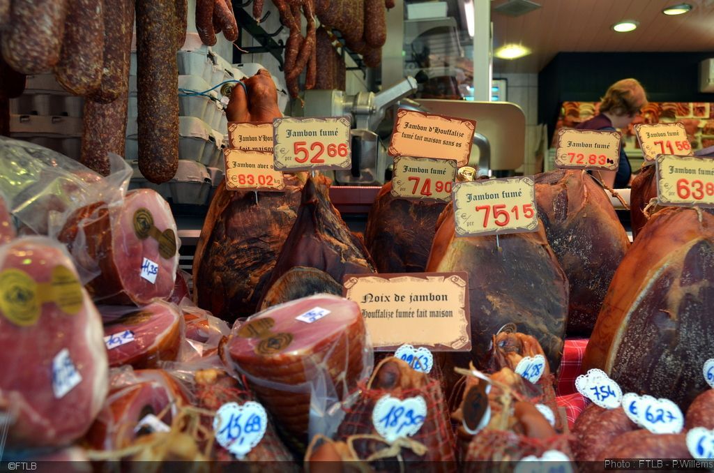 Côtés charcuterie, les spécialités sont nombreuses. Jambon d’Houffalize, jambon cuit à l’os, boudins blanc et noir, pâté de campagne, pâté de gibier, saucisson, collier d’Ardenne et noix de jambon se dégustent sans modération !